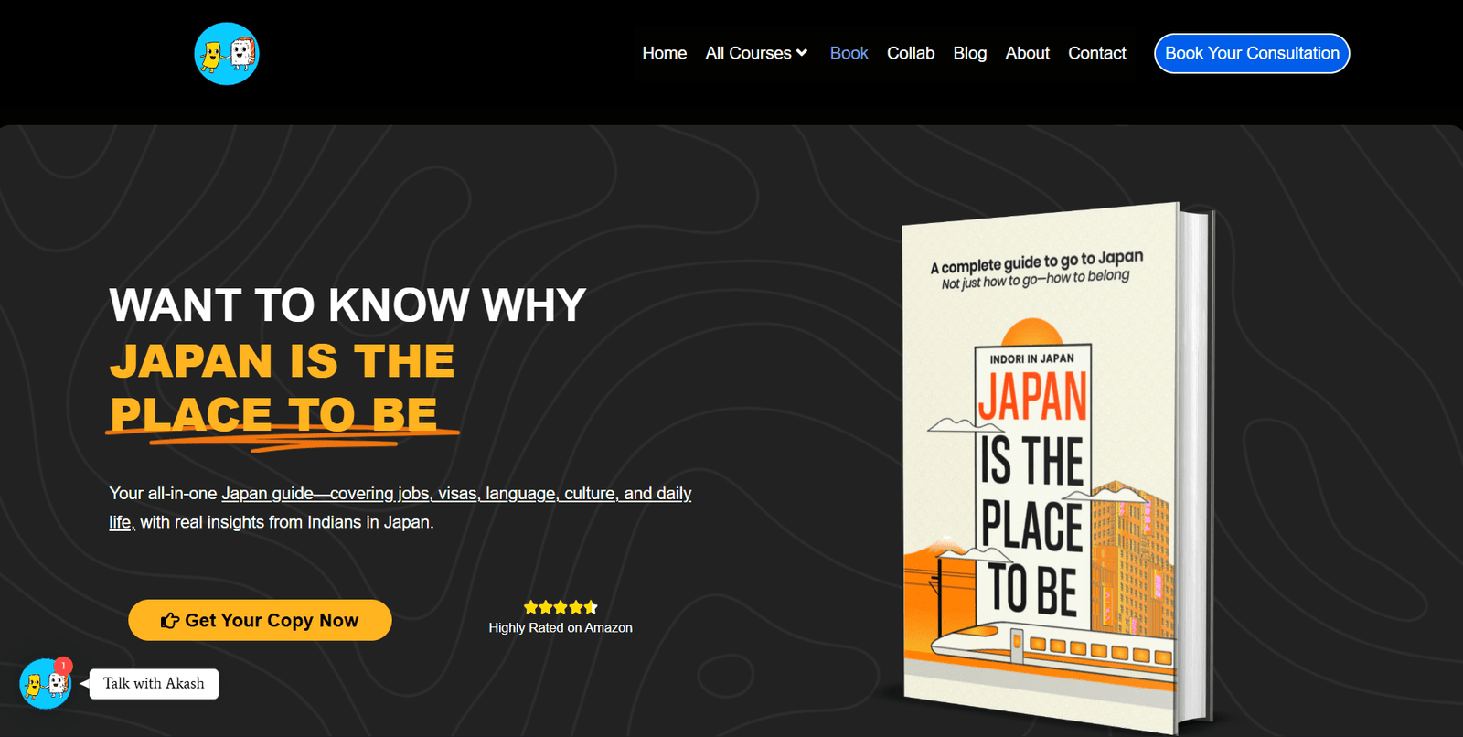 Indori in Japan is a dynamic educational platform dedicated to teaching the Japanese language and culture to Indian learners. The website was designed to capture the energy of modern learning while maintaining cultural authenticity. It combines sleek, responsive layouts with intuitive navigation to ensure a smooth learning experience for students exploring courses, books, and blogs.
